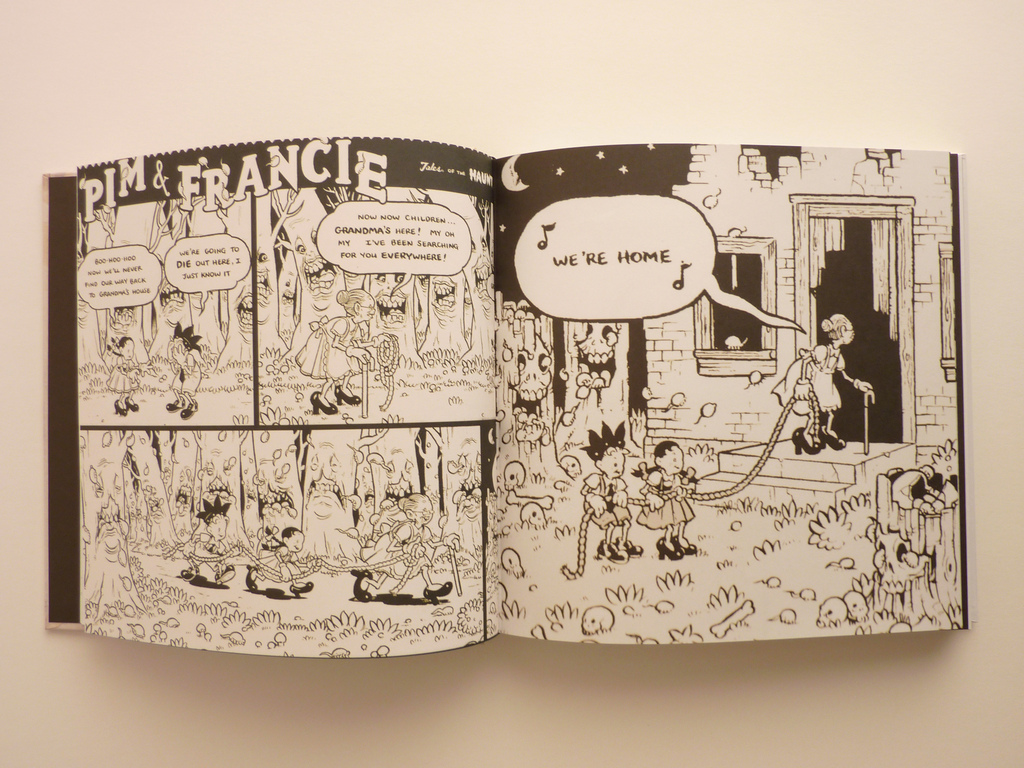Without a doubt, the scariest thing I’ve ever read – comic book or otherwise – is Pim & Francie: The Golden Bear Days. I reviewed it six years ago for Under the Radar magazine, and every time I think of that book, I still feel a little like throwing up. Basically, Al Columbia masterfully juxtaposes comics drawn in a classic animation style (think early early Mickey Mouse) with just revolting, disturbing, horrific creatures and images, sometimes in a similar art style, but often employing more-realistic looking maws and eyes, implements of terror, spittle-spewing creatures and maniacs.