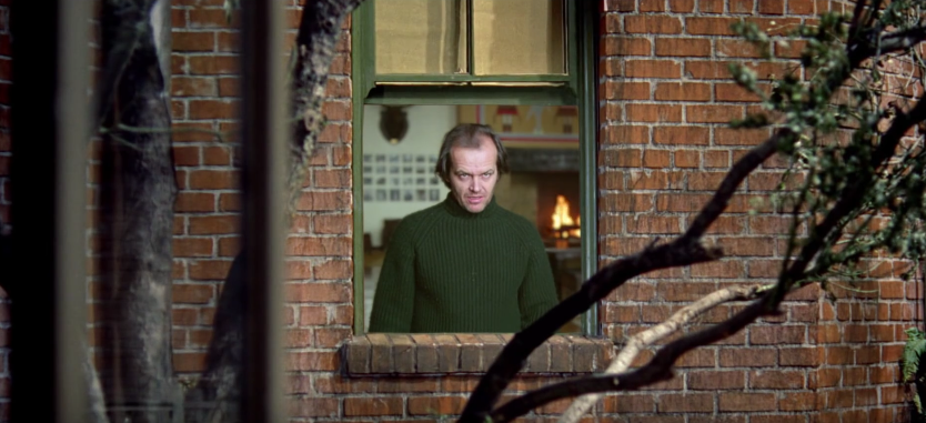 The video starts out by establishing the two masters with minor connections. We have Jimmy Stewart’s character L.B. Jefferies looking into his courtyard in Rear Window, and connecting with Jack Nicholson’s Jack Torrance from The Shinning peering back at him. The video melds their two words, It’s less parallel editing as it is “amalgamate editing”; drawing interesting visual emphasis between each director’s films by combining them digitally into one frame. It’s not until we hit footage from Eyes Wide Shut and the two worlds collide into some very weird and NSFW territory.